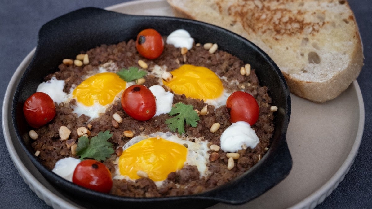 Tomato, Milk Spices & Cashew blended sauce w/ overnight ginger garlic greek yoghurt marinated chicken$23.00PopularMinced Lamb w/ Braised Eggs & Sourdough Toast