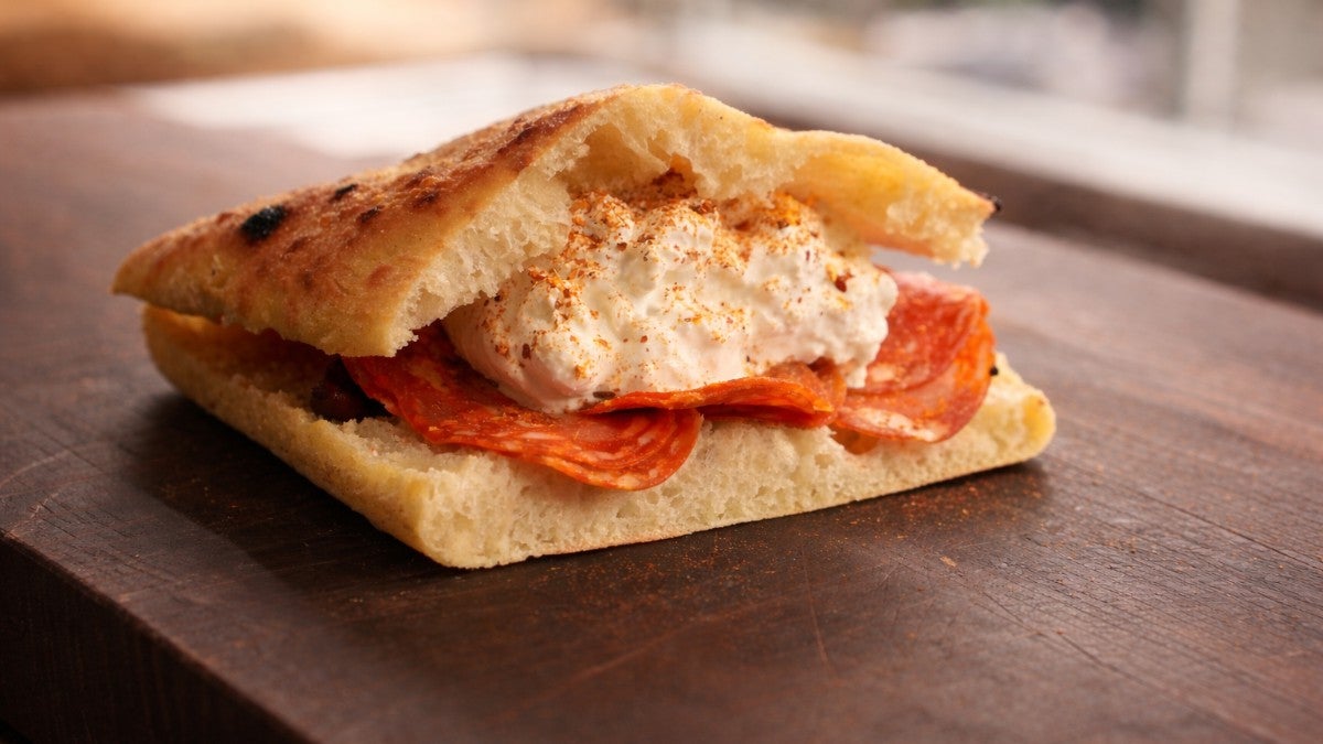 Italian artisanal sandwich featuring our signature schiacciata—handcrafted and baked fresh in-house daily. Choose from 24 varieties. Showcasing Devil Woman on hero imageFree delivery