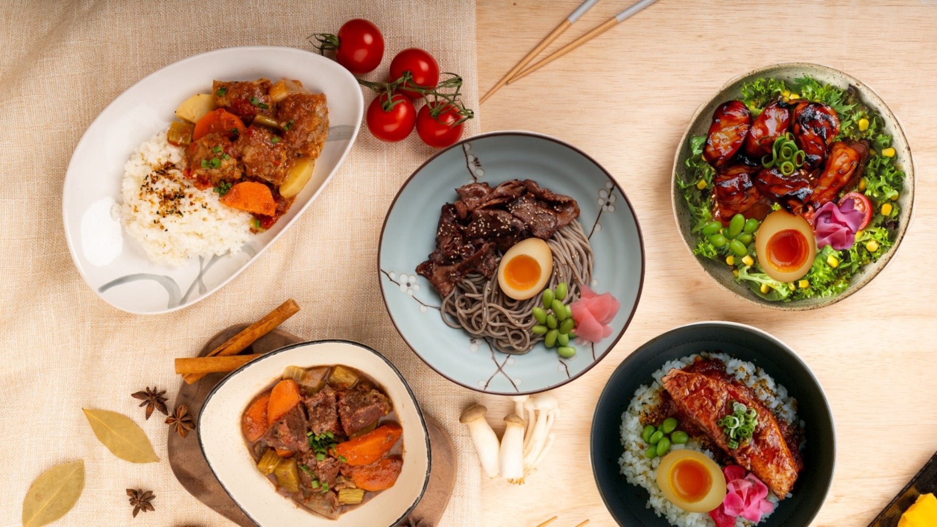 Grilled tofu with soy glaze, served with your choice of base and sauce, ajitsuke egg, edamame, and sakura daikon pickles.$11.90Vegetarian