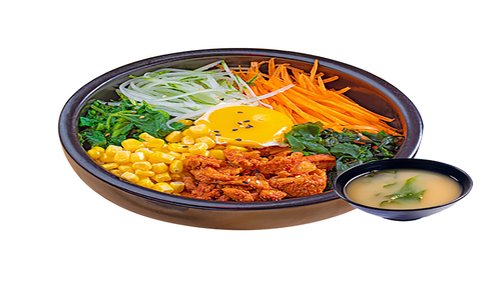 Juicy pork slices grilled on a hotplate, infused with garlic-soy marinade and served with rice and sides for a satisfying meal.$10.705. Chicken Bibimbap 鸡肉拌饭